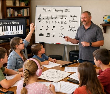 Many homeschooled and private school students do not have access to traditional school music programs. Our Traditional Music Classes are designed to bridge that gap by providing structured, classroom-style music education in a format that fits your family’s needs.